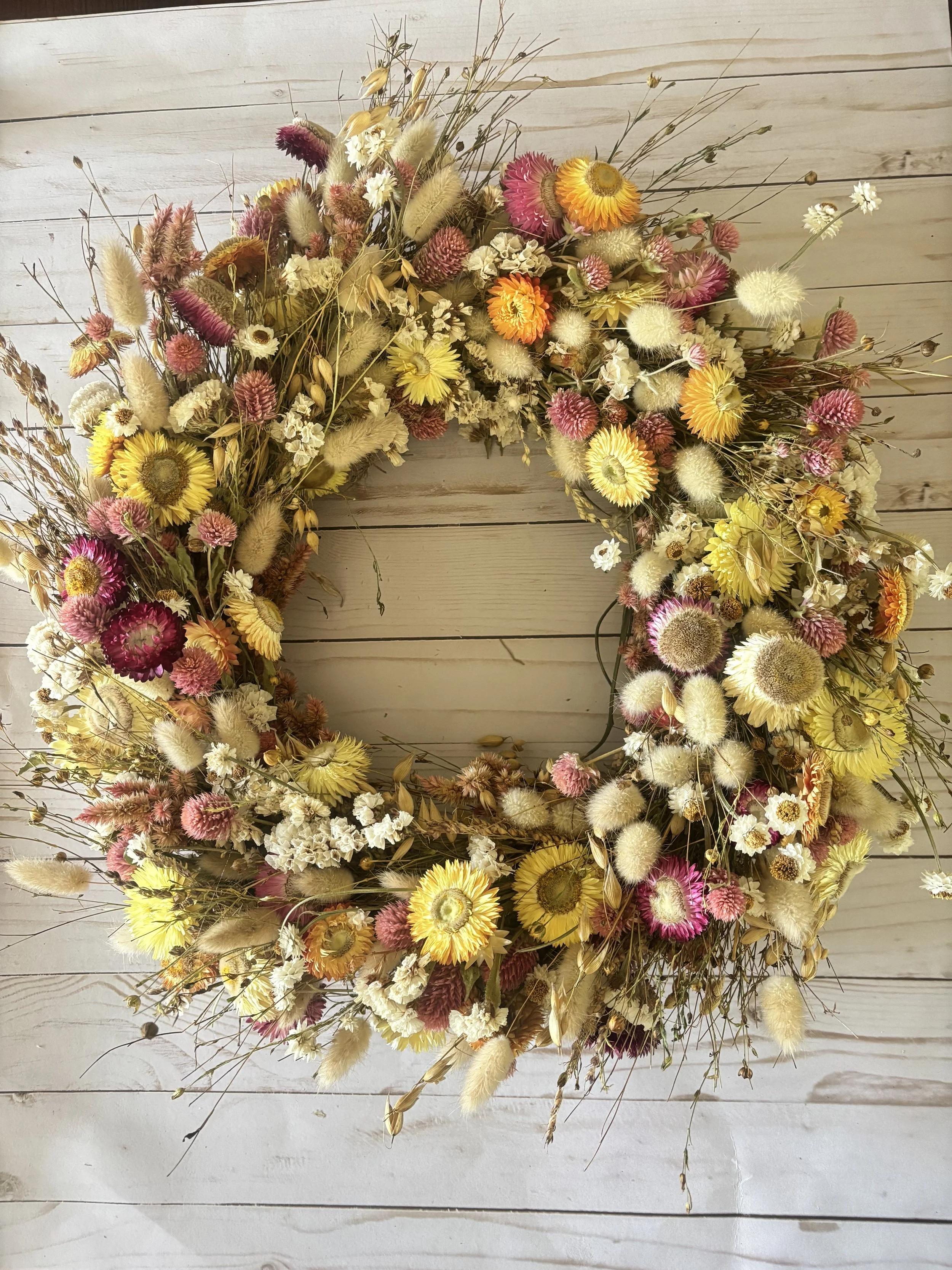 Create a one-of-a-kind dried flower wreath that will last for years to come for you to enjoy in your home. You will be guided on how to create a wreath using all the flowers we have dried from our farm to create a wreath in the perfect colour scheme and textures to compliment your home.